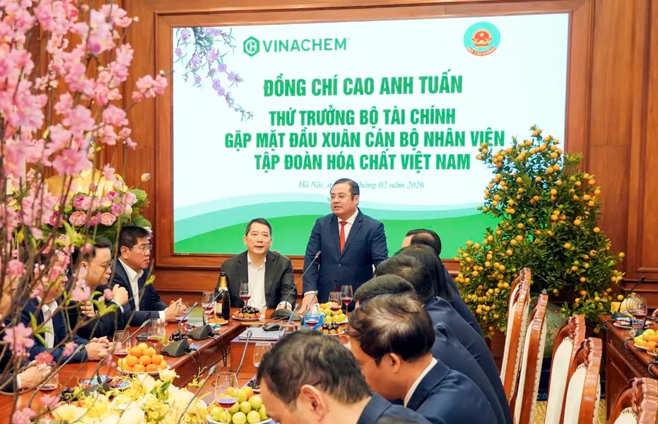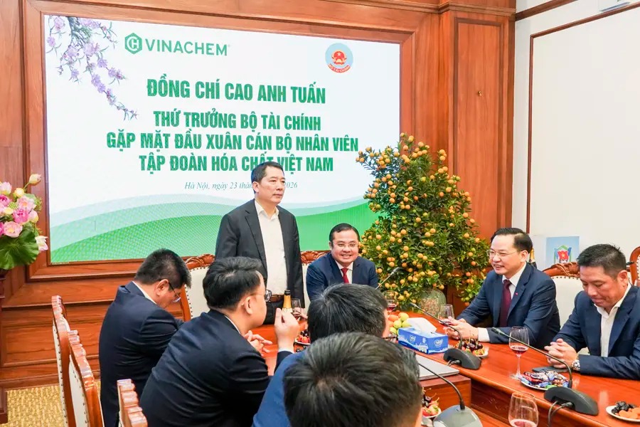 On the morning of February 23, 2026, Comrade Cao Anh Tuan, Deputy Minister of Finance, visited, met with, and extended Lunar New Year greetings to the leadership, officials, staff, and employees of Vietnam National Chemical Group (VINACHEM) on the occasion of the New Year.
