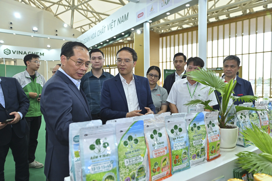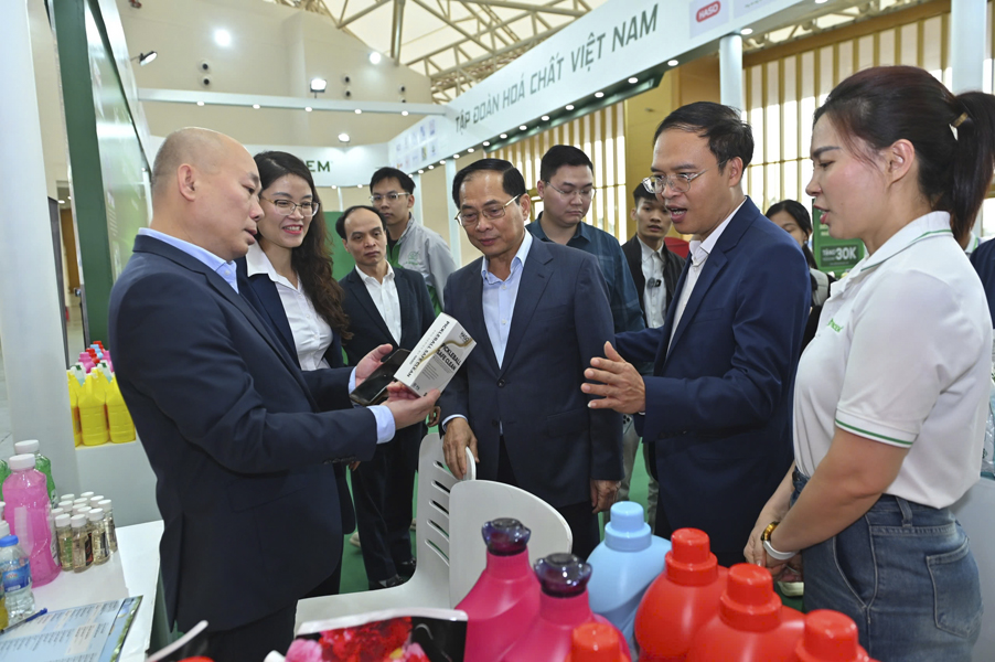 Tại khu vực trưng bày của VINACHEM, Phó Thủ tướng Bùi Thanh Sơn được ông Nguyễn Tuấn Dũng – Phó Tổng Giám đốc Tập đoàn Hóa chất Việt Nam, cùng cán bộ, người lao động Tập đoàn đón tiếp. Gian hàng VINACHEM được thiết kế hiện đại, khoa học, trưng bày nhiều nhóm sản phẩm tiêu biểu trong lĩnh vực công nghiệp hóa chất, phân bón và hàng tiêu dùng, thể hiện rõ năng lực sản xuất, tính đa dạng và chất lượng sản phẩm của Tập đoàn.