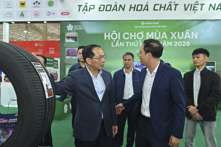 Chiều ngày 06/02/2026, trong khuôn khổ Hội chợ Mùa Xuân 2026, Phó Thủ tướng Chính phủ Bùi Thanh Sơn đã đến thăm gian hàng của Tập đoàn Hóa chất Việt Nam (VINACHEM). Đây là một trong những hoạt động nổi bật của hội chợ, thu hút sự quan tâm của đông đảo đại biểu, doanh nghiệp và khách tham quan.